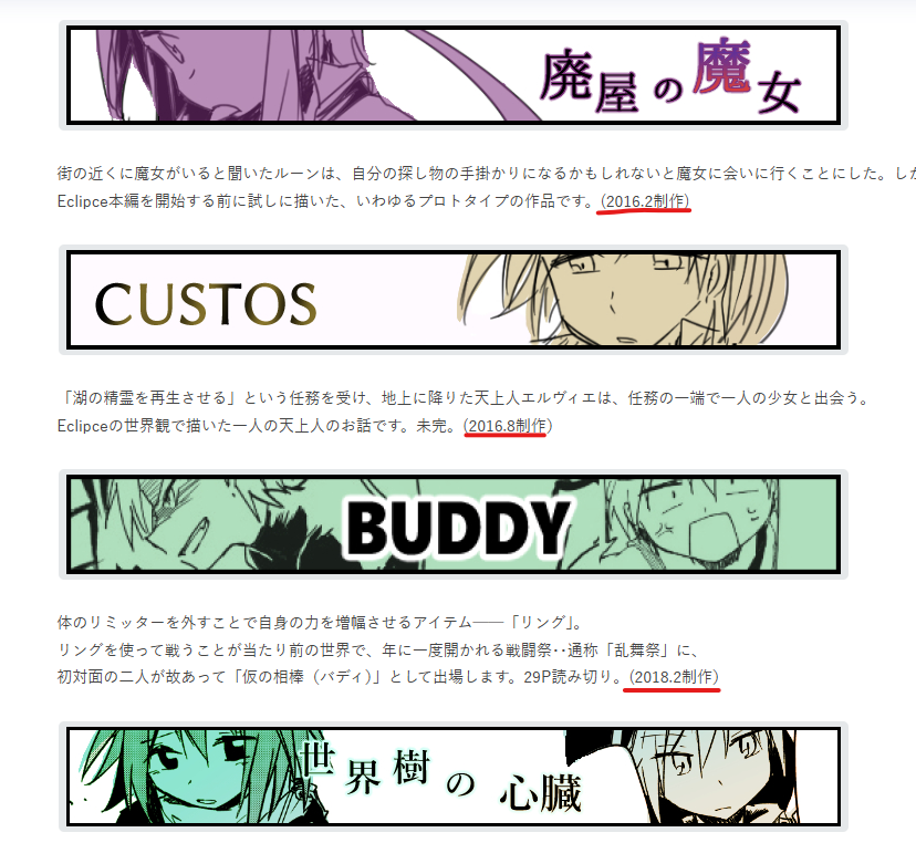 読切に制作時期を追記しました。